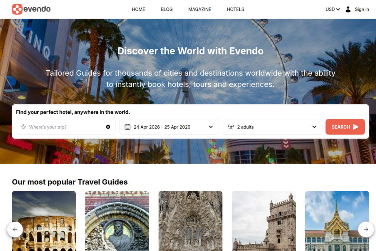 evendo.com looks like travel. Traffic estimates are limited, so use the trust and structure modules first. Current AI trust scoring is 15/100.