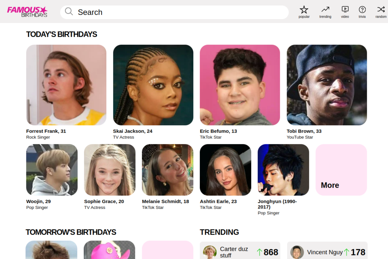 famousbirthdays.com looks like arts & entertainment. Traffic estimates are limited, so use the trust and structure modules first. Current AI trust scoring is 15/100.