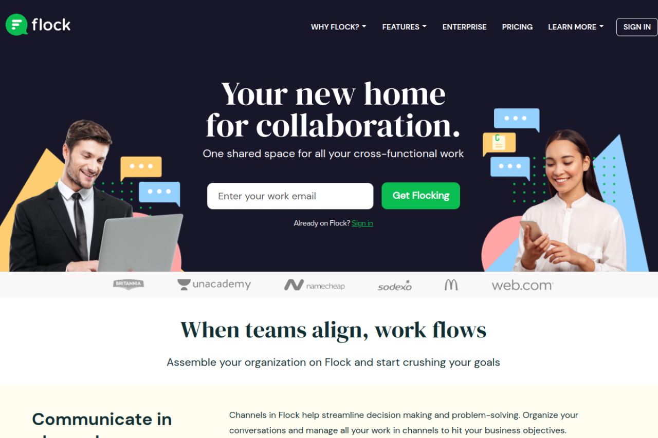 Flock, the best team communication app and online collaboration platform, comes with team messaging, project management and other great features that improve productivity and boost speed of execution.