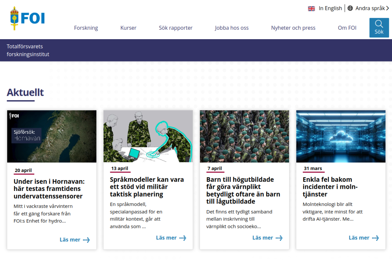 FOI:s kärnverksamhet är forskning, metod- och teknikutveckling samt analyser och studier. Myndigheten är uppdragsfinansierad och ligger under Försvarsdepartementet.