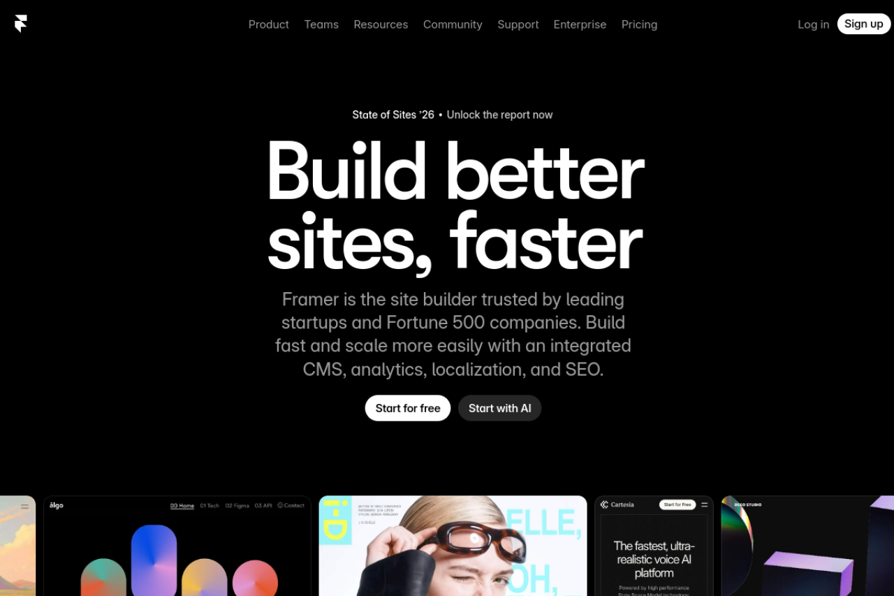 Build a free website with Framer—enjoy full design freedom, powerful CMS, built-in SEO, and real-time collaboration. Create professional, fully custom sites with the no-code builder loved by designers and high-performing teams.