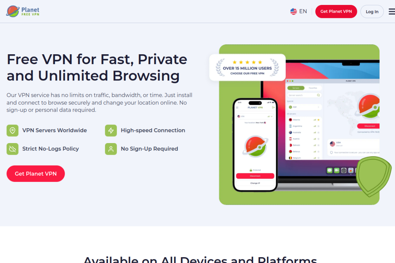 Free VPN Proxy by Planet VPN - No Registration & No Logs