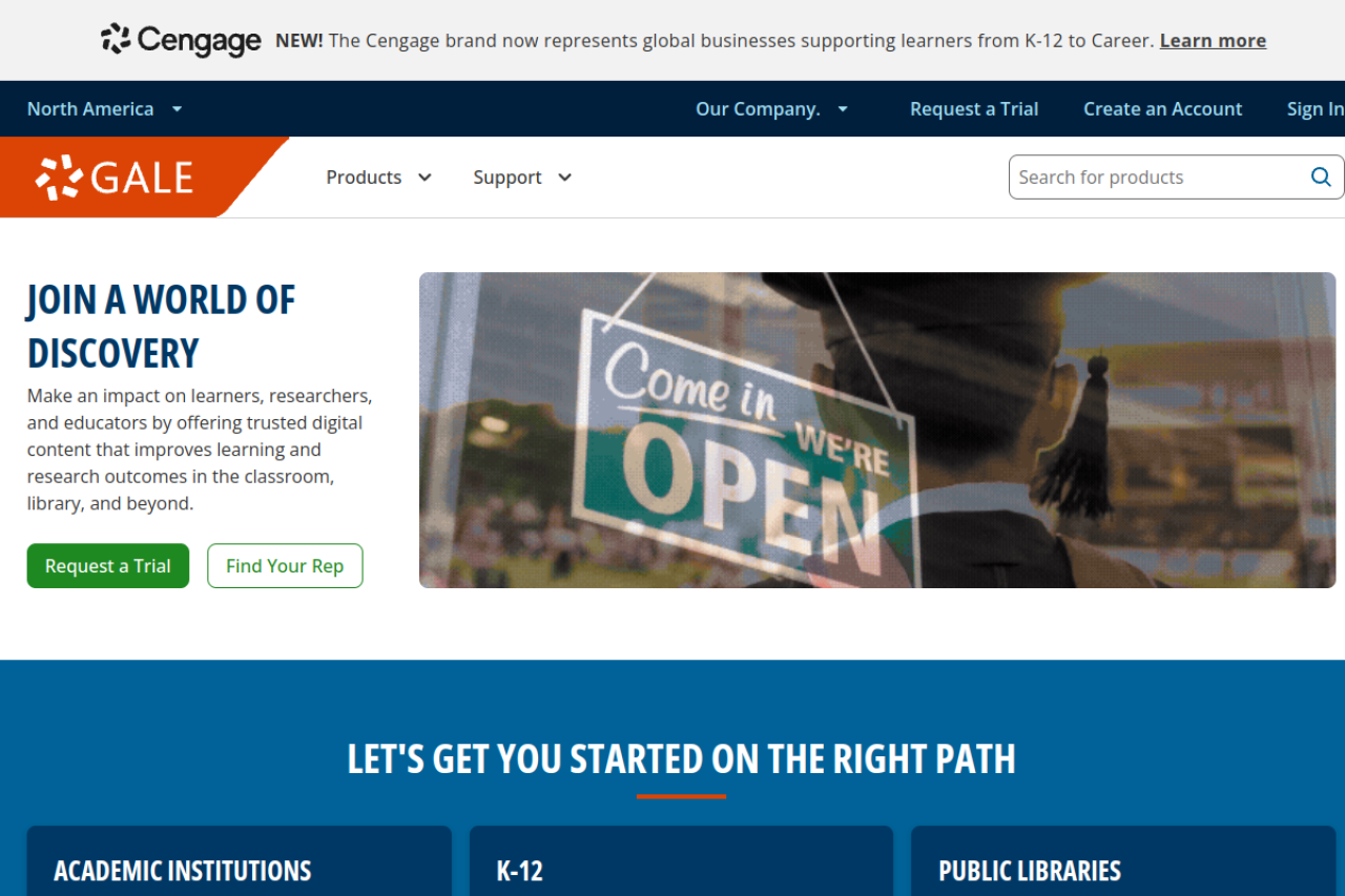 Gale, part of Cengage Group, provides historical archive, library solutions, and trusted educational resources for academic, K-12, and public libraries.