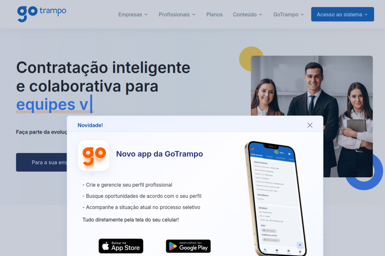 Plataforma de relacionamento entre empresas e profissionais com sistema de Recrutamento e Seleção que auxilia empresas na contratação rápida e ágil de profissionais