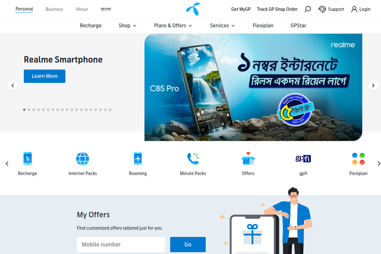 Grameenphone is the leading telecom operator with highest number of subscribers & widest network in Bangladesh, providing best 4G internet service nationwide.