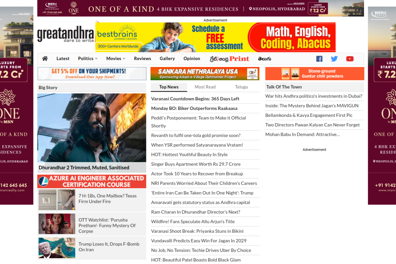 greatandhra.com looks like arts & entertainment. Traffic estimates are limited, so use the trust and structure modules first. Current AI trust scoring is 15/100.