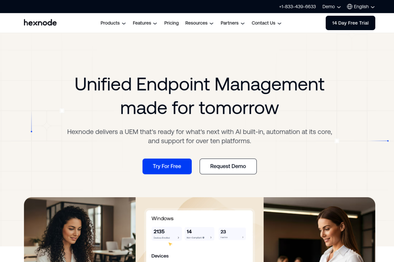 The complete platform for UEM and XDR. Securely manage mobiles, desktops, and IoT devices while defending against advanced cyber threats. Try Hexnode free.