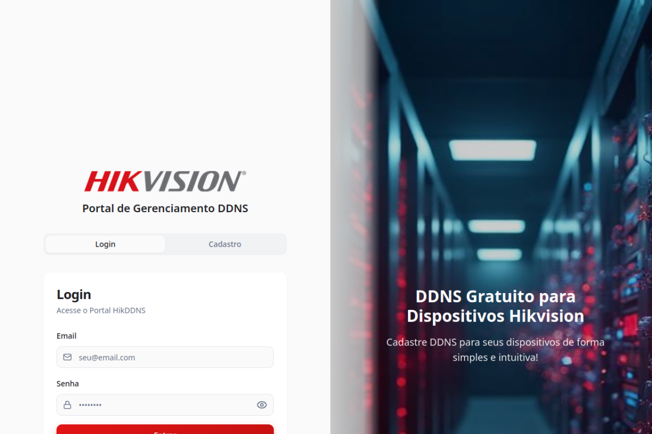 Plataforma profissional para gerenciamento de Dynamic DNS para dispositivos Hikvision. Conecte e monitore seus equipamentos de segurança com facilidade e confiabilidade.
