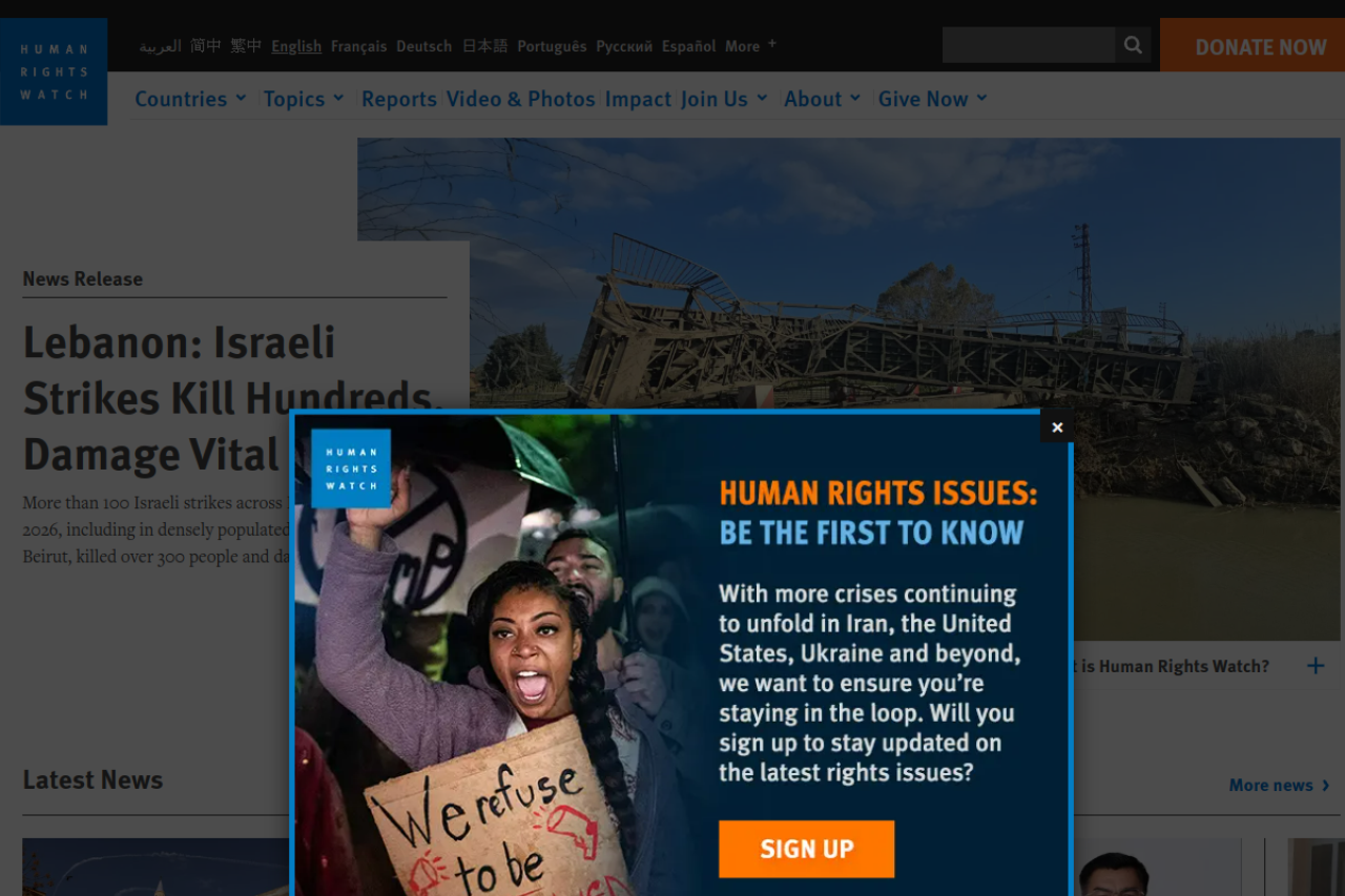 Human Rights Watch defends the rights of people in 100 countries worldwide, spotlighting abuses and bringing perpetrators to justice
