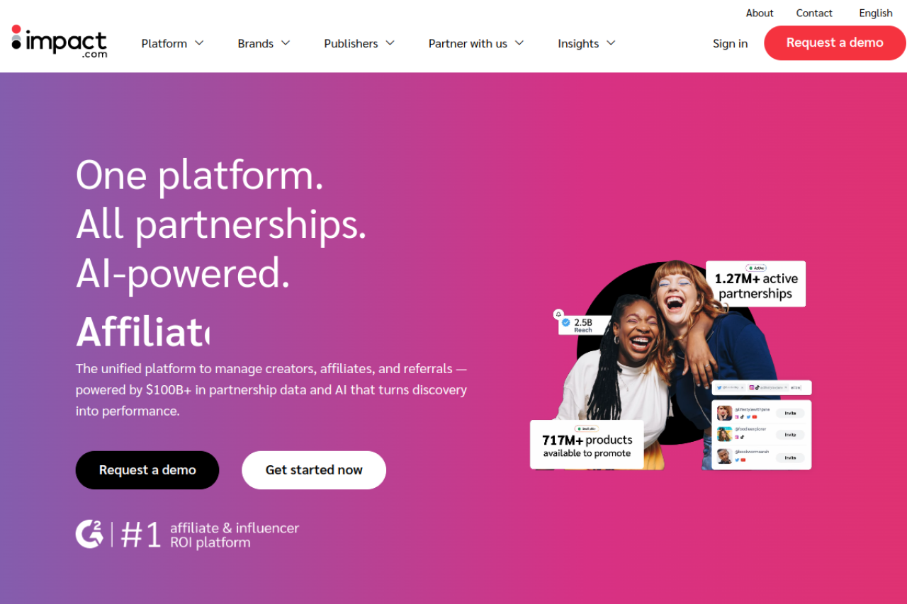 impact.com offers a unified platform for managing affiliates, influencers, and referrals, streamlining partnerships for brands & publishers.