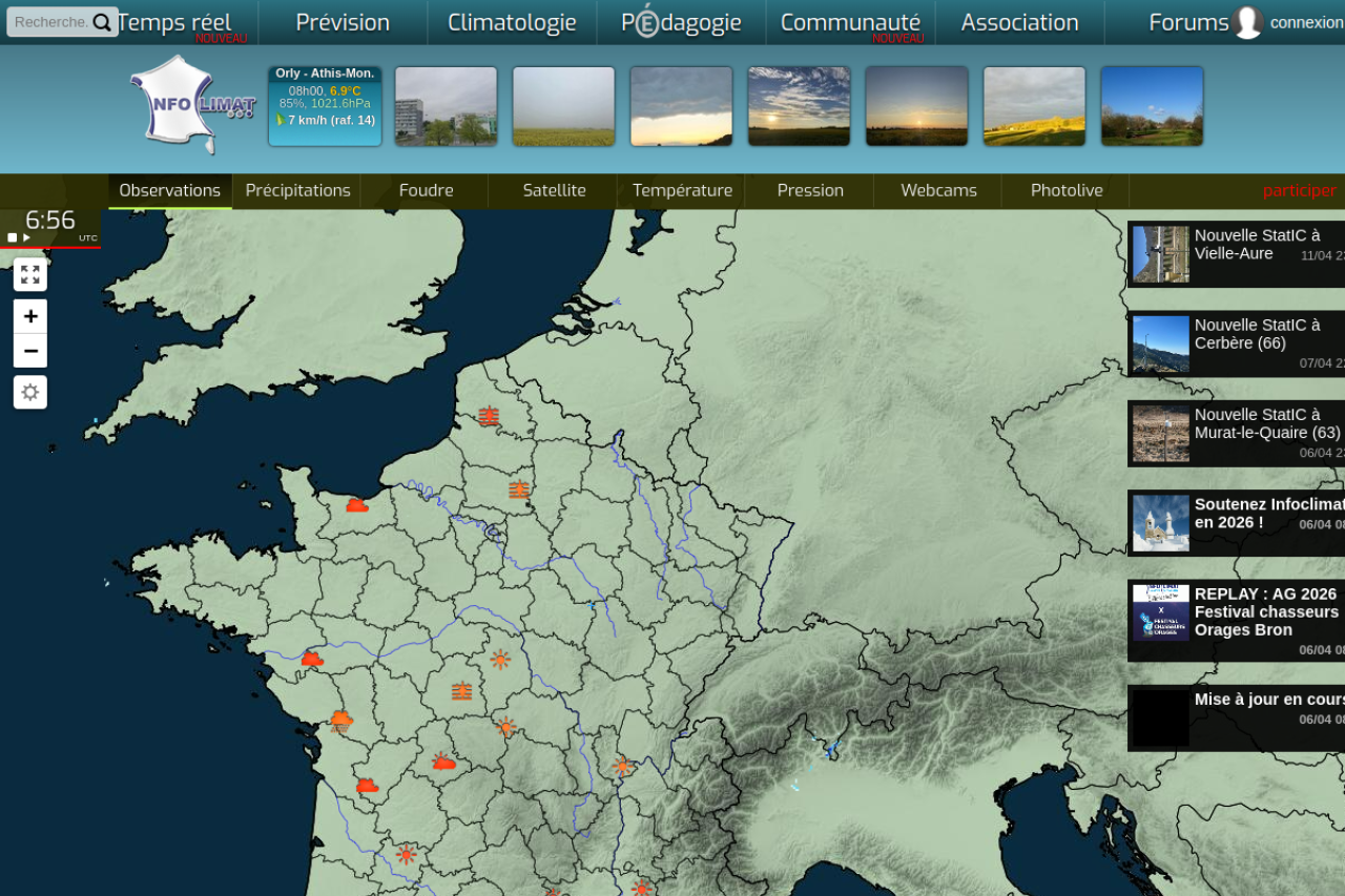 Infoclimat - la météo en temps réel : observations météo en direct, prévisions, archives climatologiques, photos et vidéos...