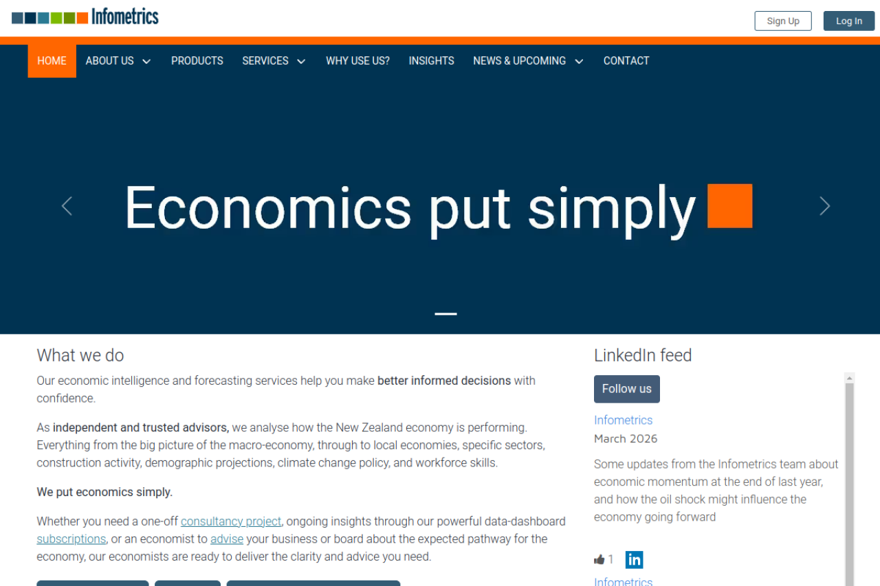 infometrics.co.nz looks like business. Traffic estimates are limited, so use the trust and structure modules first. Current AI trust scoring is 8/100.
