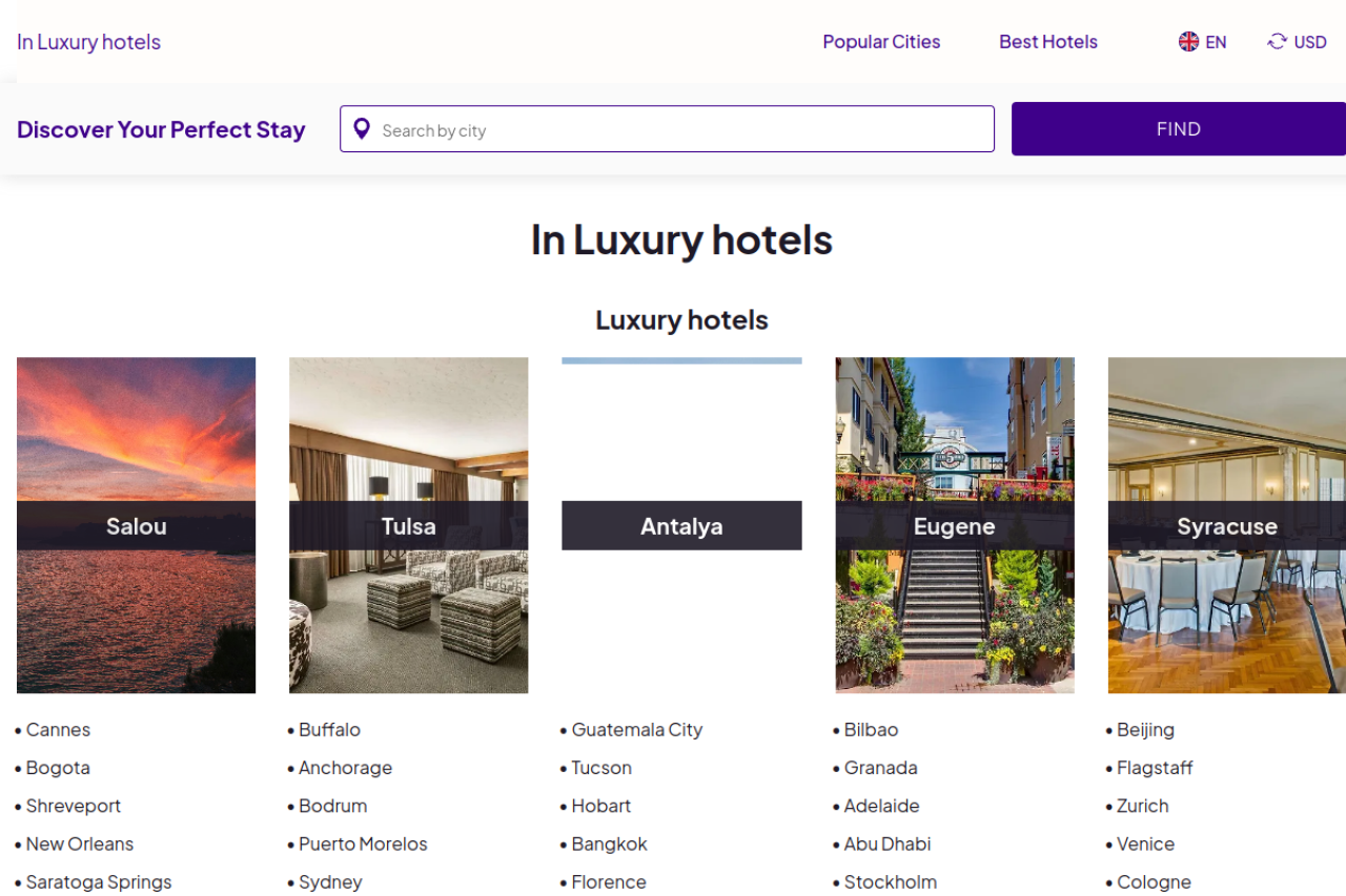 View all 6 alternatives and competitors to inluxuryhotels.com.
