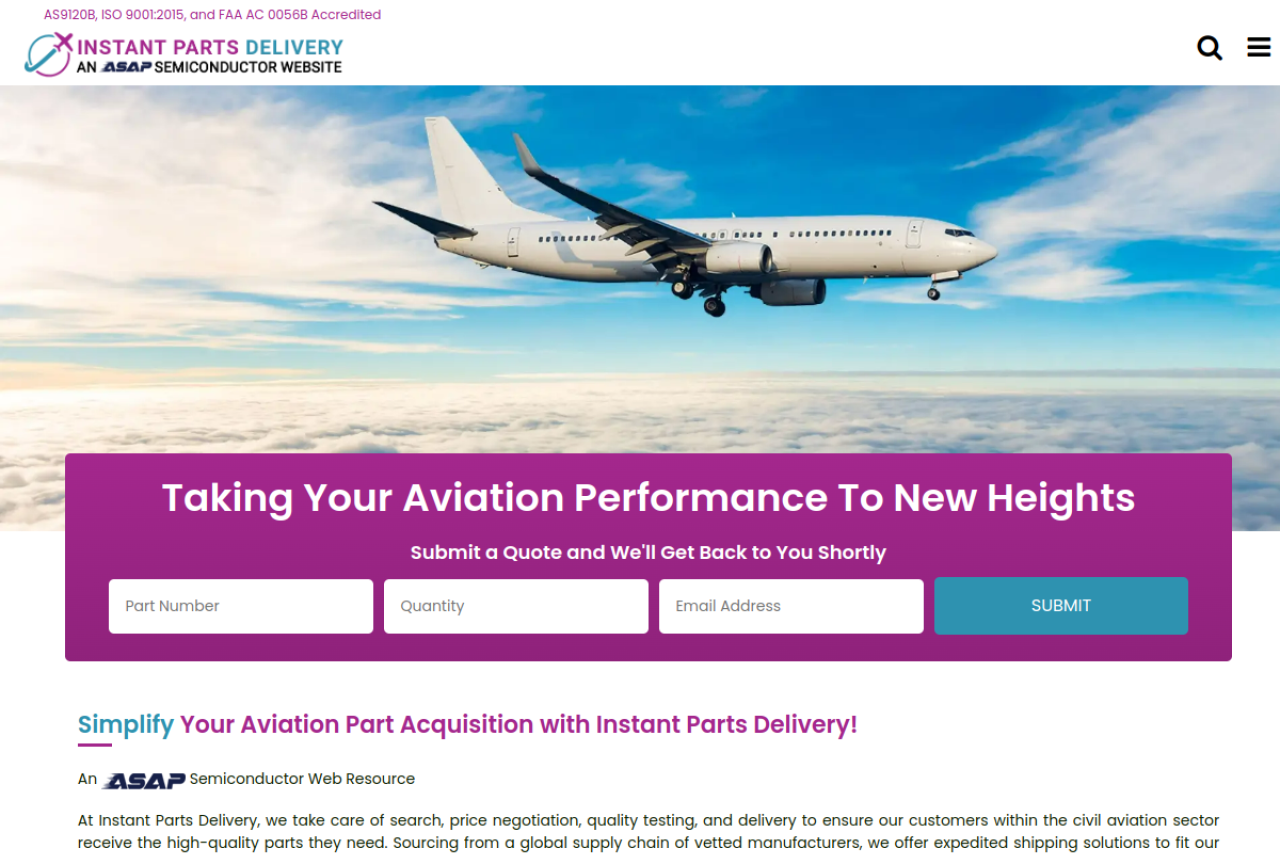 Visit Instant Parts Delivery to get aircraft parts for Civil aviation. Most reliable suppliers of Aviation, Business, Regional and Commercial Jet parts. Check our complete Inventory and kindly let us know how we can best serve you.