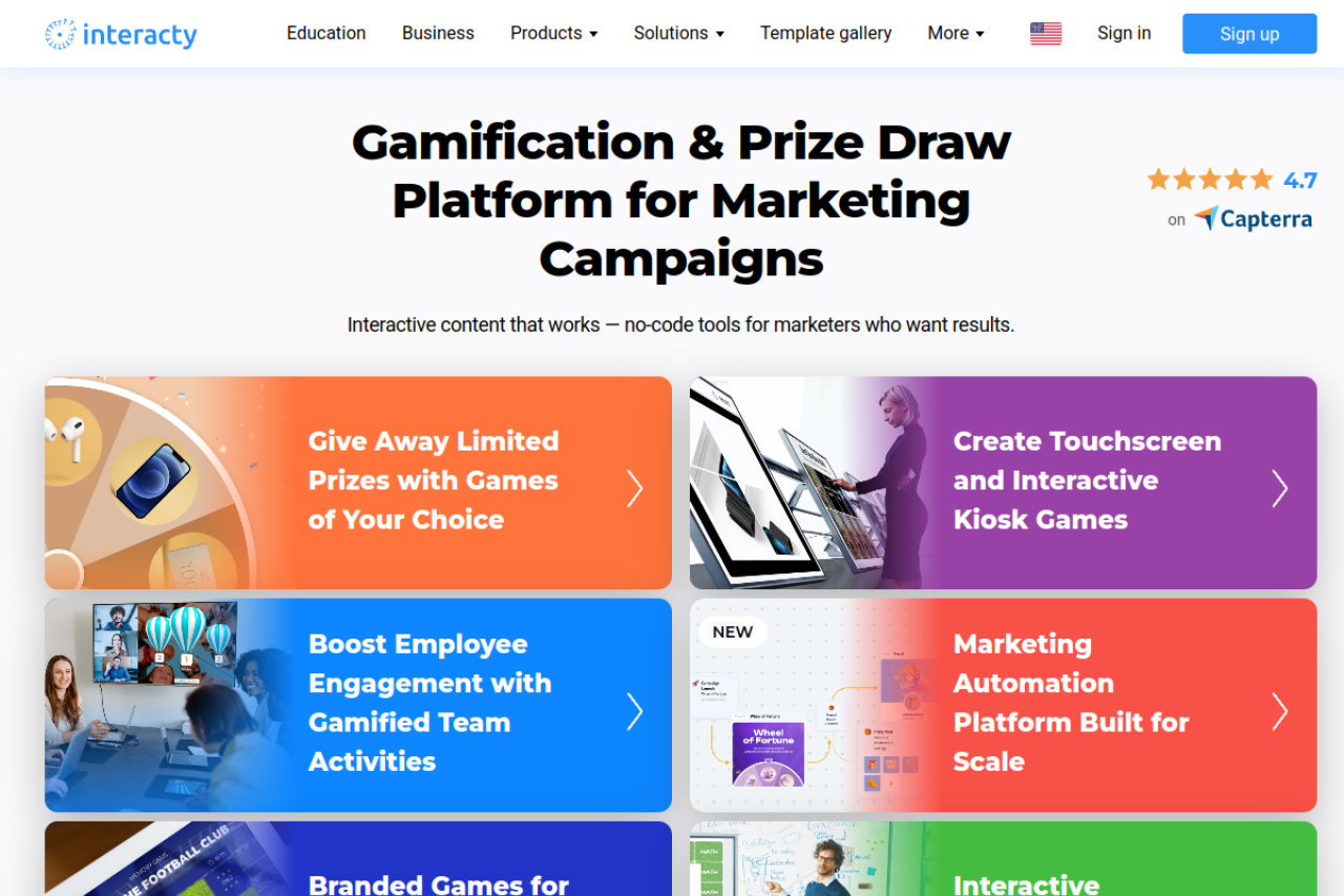 Create quizzes, memory and matching games, puzzle, flip cards, timelines, and other interactive experiences. Educate, generate leads, collect data and drive more traffic. Create projects in minutes with of ready-made templates. Get maximum efficiency with detailed analytics and integrations. Get started for free!