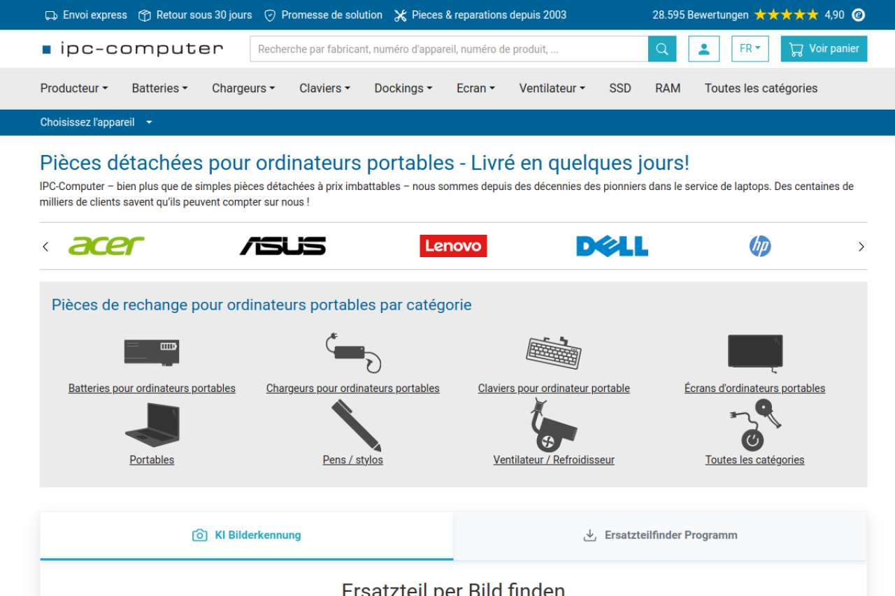 ipc-computer.fr Pièces détachées pour portables concernant plus de 1.000.000 pièces de la boutique