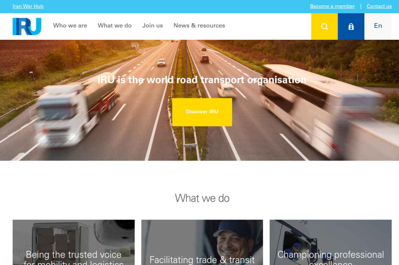 The International Road Transport Union (IRU) is the world transport organisation, supporting drivers and transport companies all over the world.