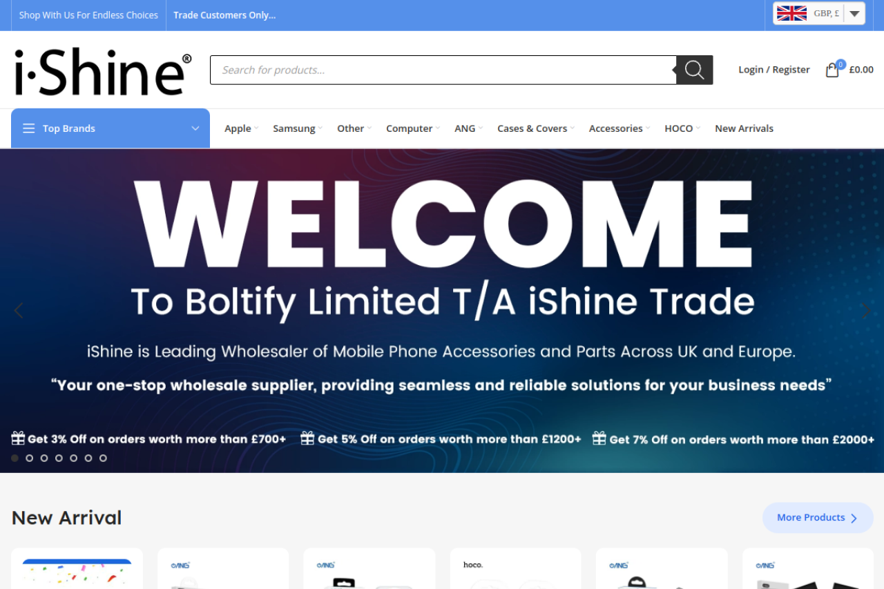 Boltify Limited is a leading wholesaler of mobile phone accessories and parts across the UK and Europe. Get amazing discounts for orders over £200.