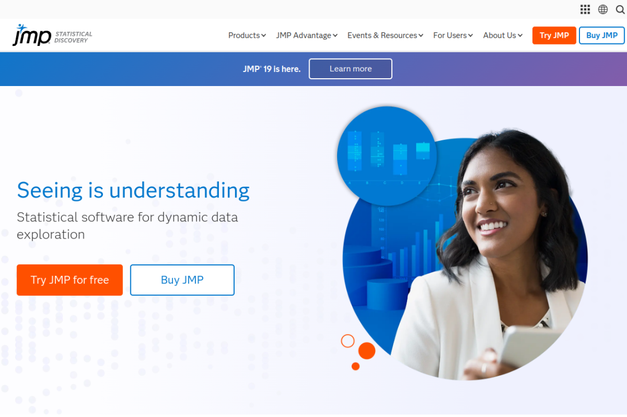 JMP is powerful statistical software designed with scientists and engineers in mind, but ideal for anyone solving problems with data. Packed with tools for data preparation, analysis, graphing, and so much more, JMP has everything you and your organization need to be truly unstoppable with data.