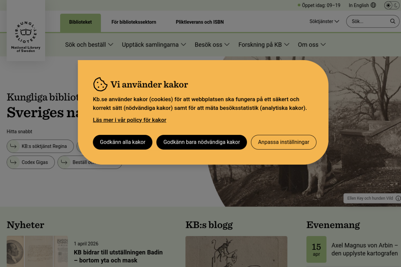 Kungliga biblioteket (KB) är Sveriges nationalbibliotek. Vi samlar in och bevarar nästan allt som publiceras i Sverige.