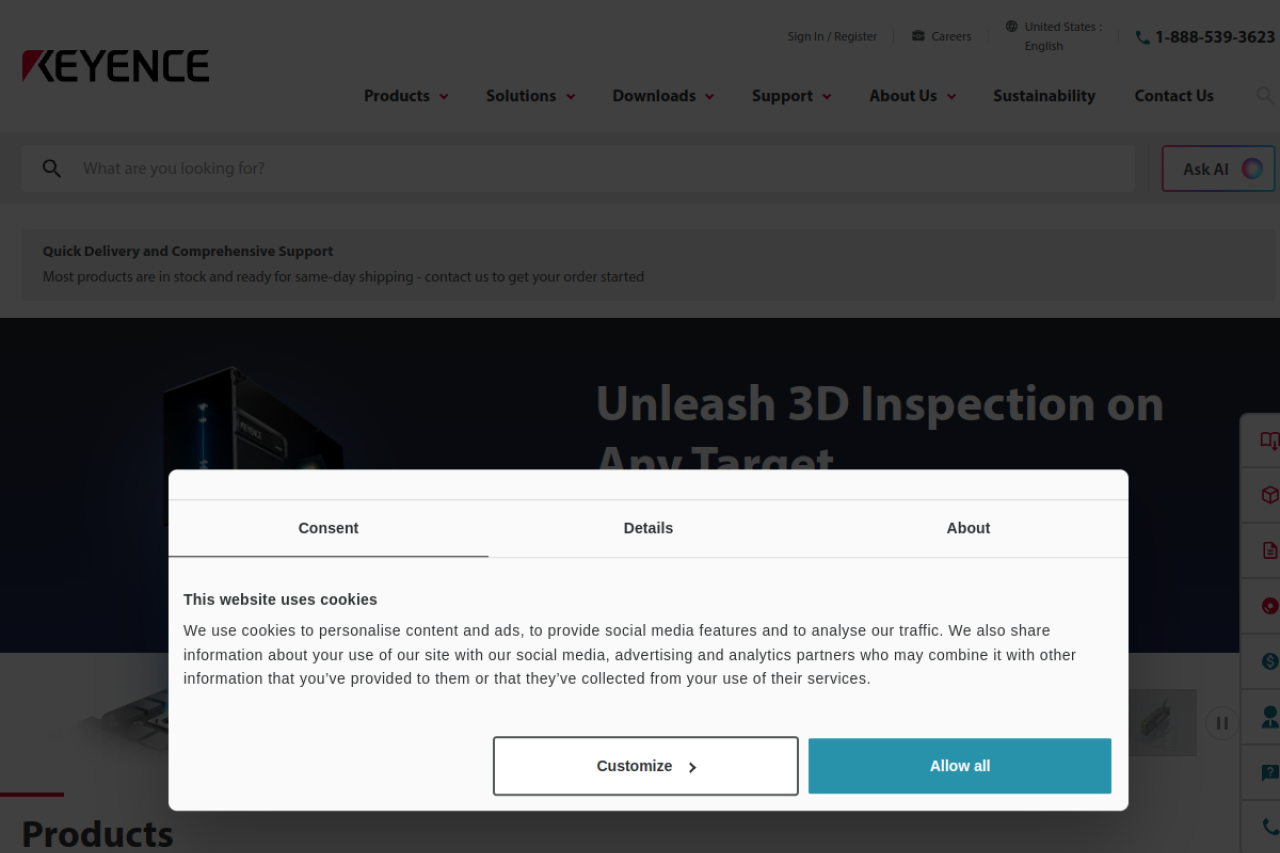 Sensors, machine vision systems, measuring instruments, barcode readers, PLCs and other factory automation sensor products. KEYENCE America.