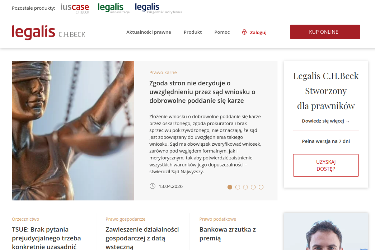 Legalis udostępnia wszystkie komentarze, metodyki, monografie i czasopisma C.H.Beck. To także najwięcej orzeczeń SN wydanych po 1989 r.