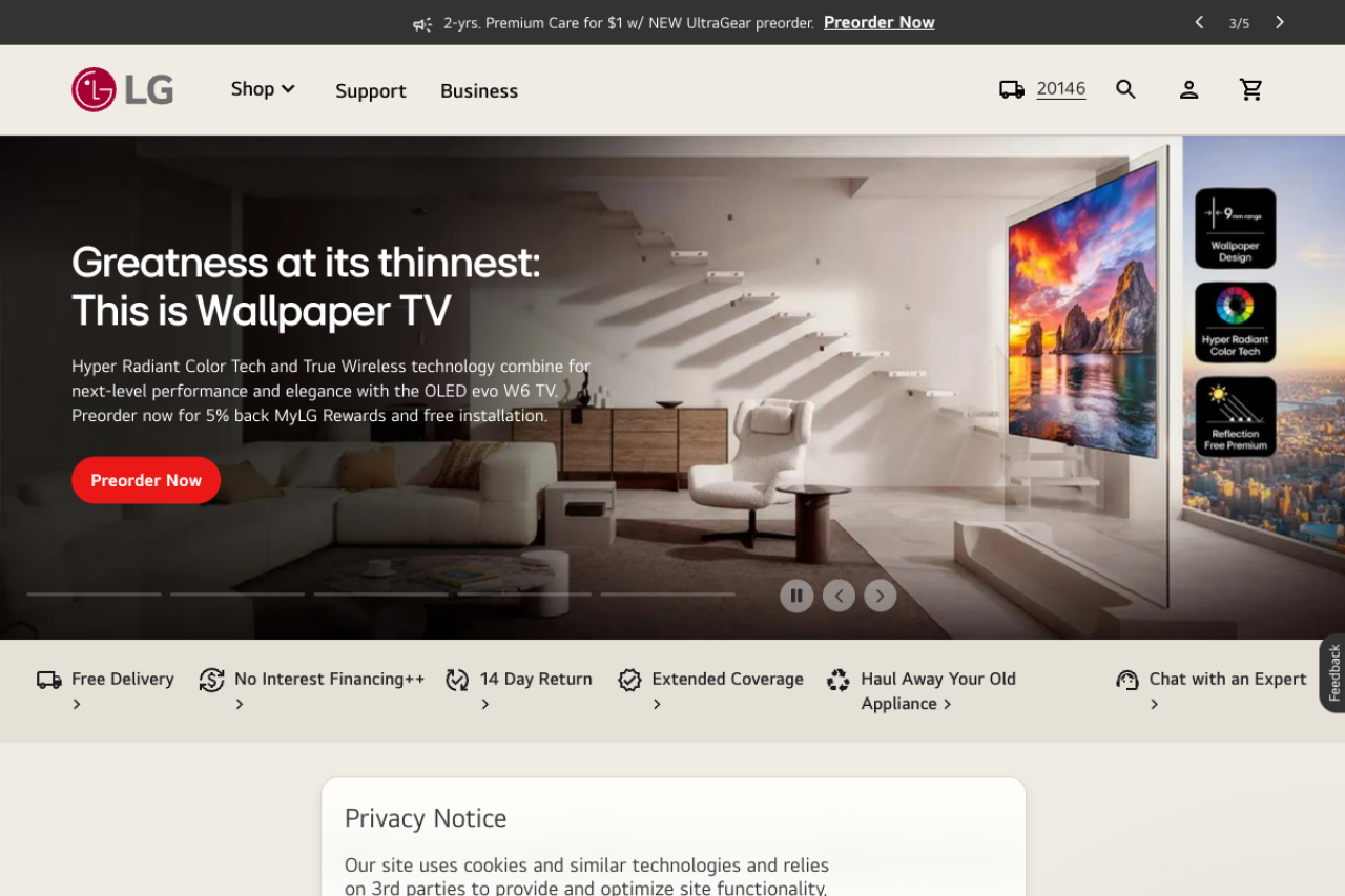 lg.com looks like technology & computing. Traffic estimates are limited, so use the trust and structure modules first. Current AI trust scoring is 5/100.