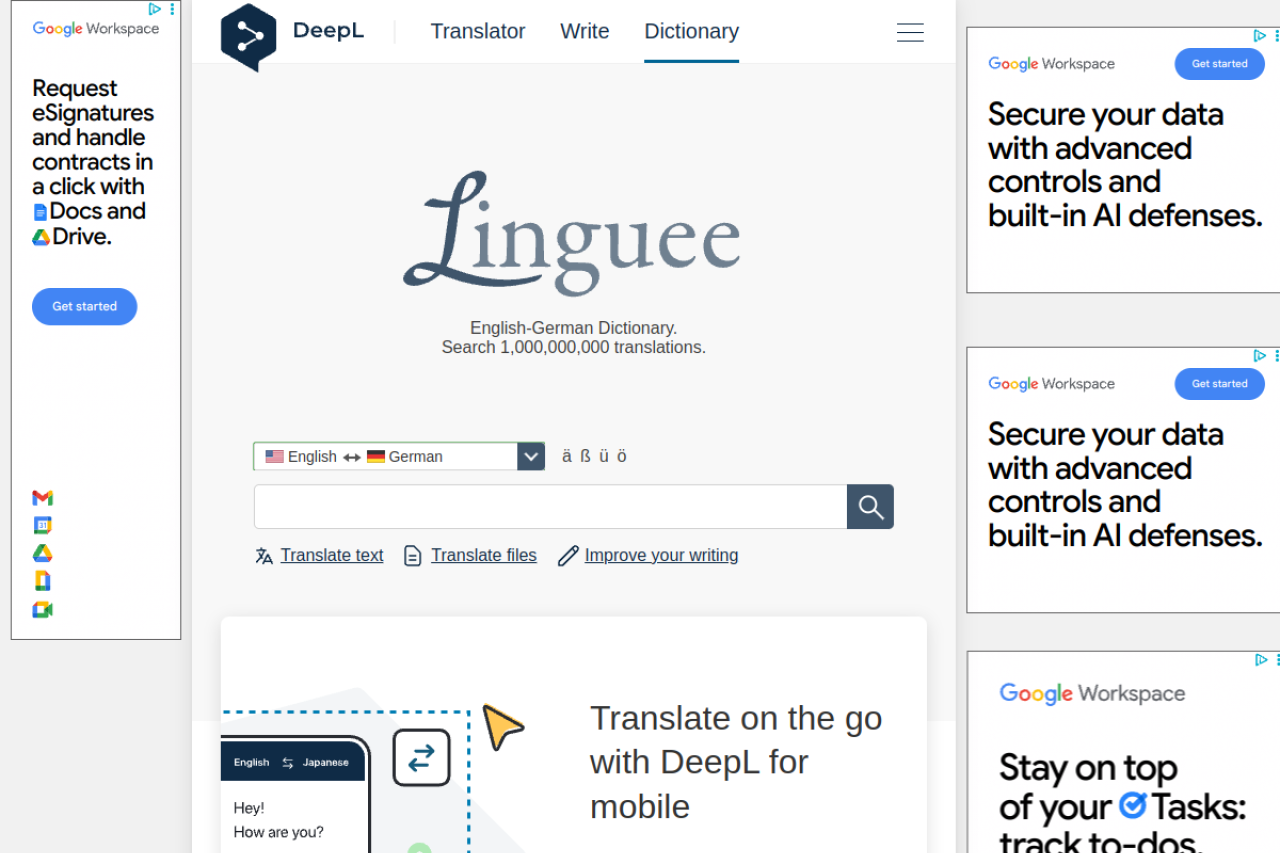 English Dictionary and Translation Search with 1,000,000,000 example sentences from human translators. Languages: English, German, French, Spanish, and Portuguese