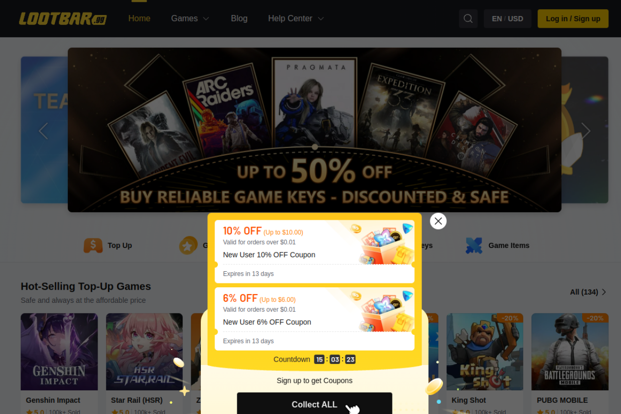 LootBar is a global professional and secure game trading platform, offering game top up, item trading, and game currency trading services. We support video games like Genshin, PUBG, HSR, MLBB, ZZZ, FC 26, Whiteout Survival, and more. For game transactions, choose LootBar. Safe, convenient, and efficient!