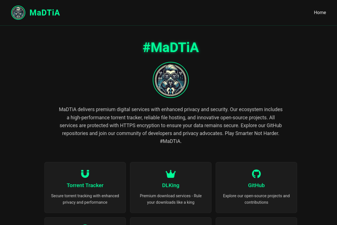 MaDTiA offers secure, high-performance digital services including torrent tracking, file hosting, and open-source projects. Experience enhanced privacy and reliability with our premium solutions.