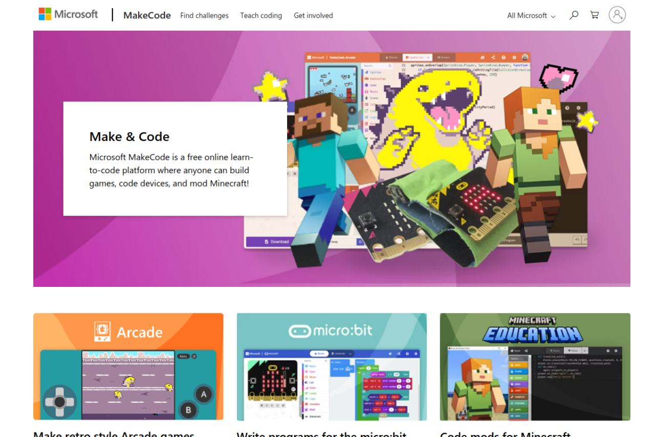 MakeCode brings computer science to life for all students with fun projects, immediate results, and both block and text editors for learners at different levels.