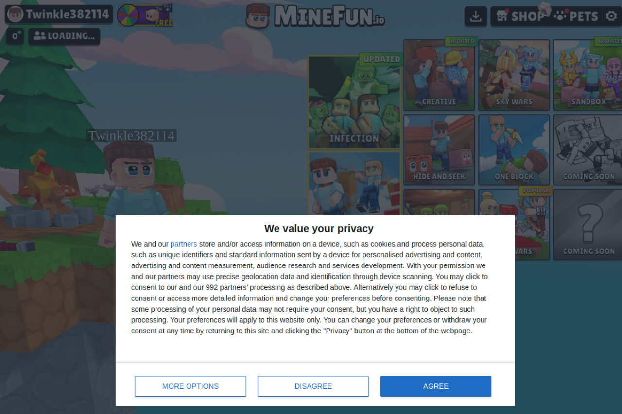Play MineFun.io – a no-download, free Minecraft-like game. Join PvP|PvE battles in Bedwars, Skywars, Hide and Seek, and Parkour. Build, craft, and explore blocky worlds!