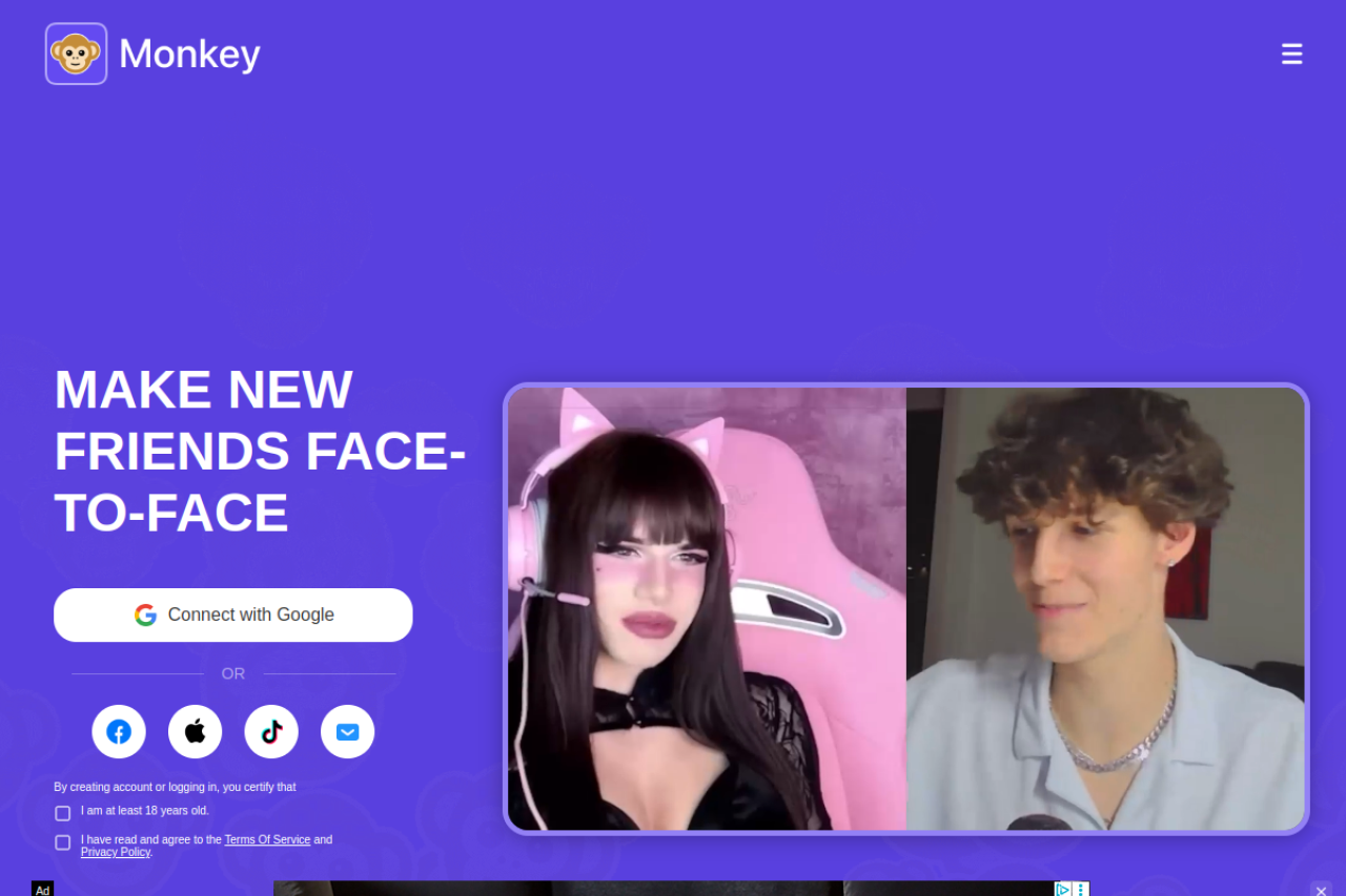 Monkey is a free live and random video chat app that helps you meet new people instantly. Enjoy spontaneous conversations, real connections, and a safe community anytime.