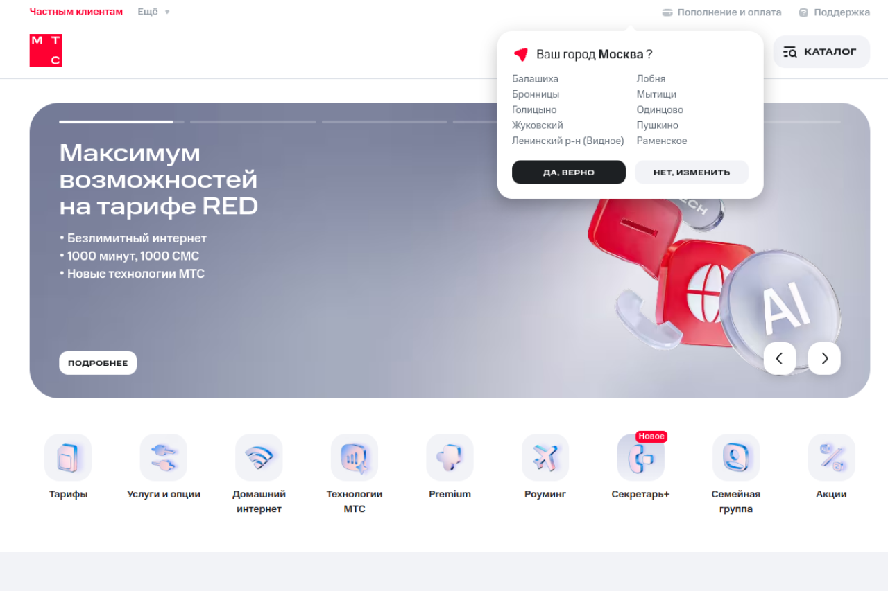 МТС - связь и экосистема цифровых сервисов - Частным клиентам | Официальный сайт МТС - Москва и Московская область