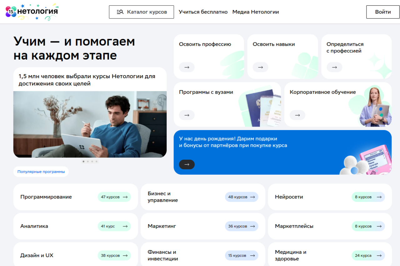 Обучение онлайн на платформе Нетология - курсы IT и образовательные программы с трудоустройством. Получи профессию с нашими онлайн курсами!