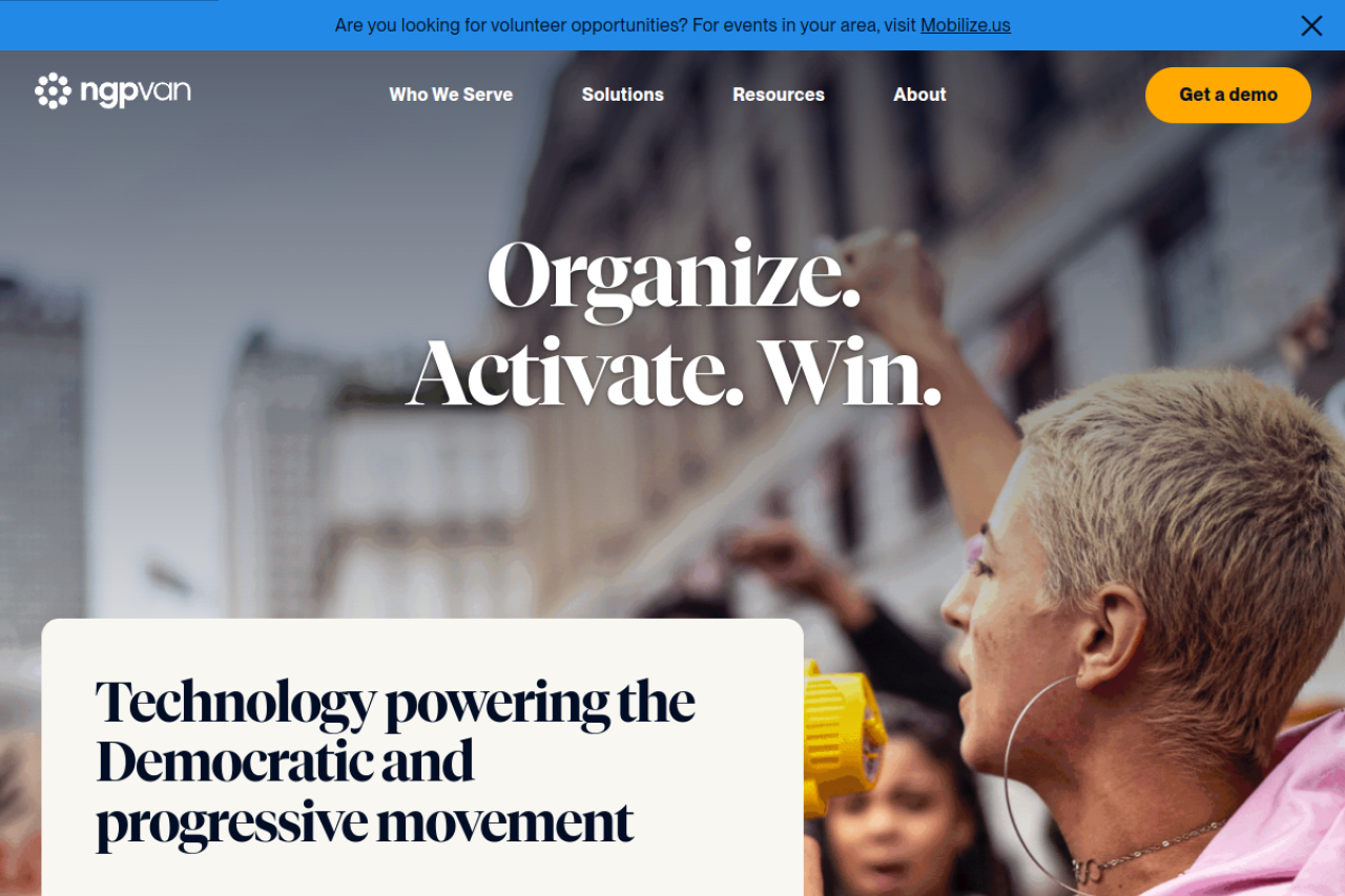 NGP VAN is the leading technology provider to Democratic and progressive political campaigns and organizations, nonprofits, municipalities, and other groups. Access an integrated platform of the best fundraising, compliance, field, organizing, digital, and social networking products.