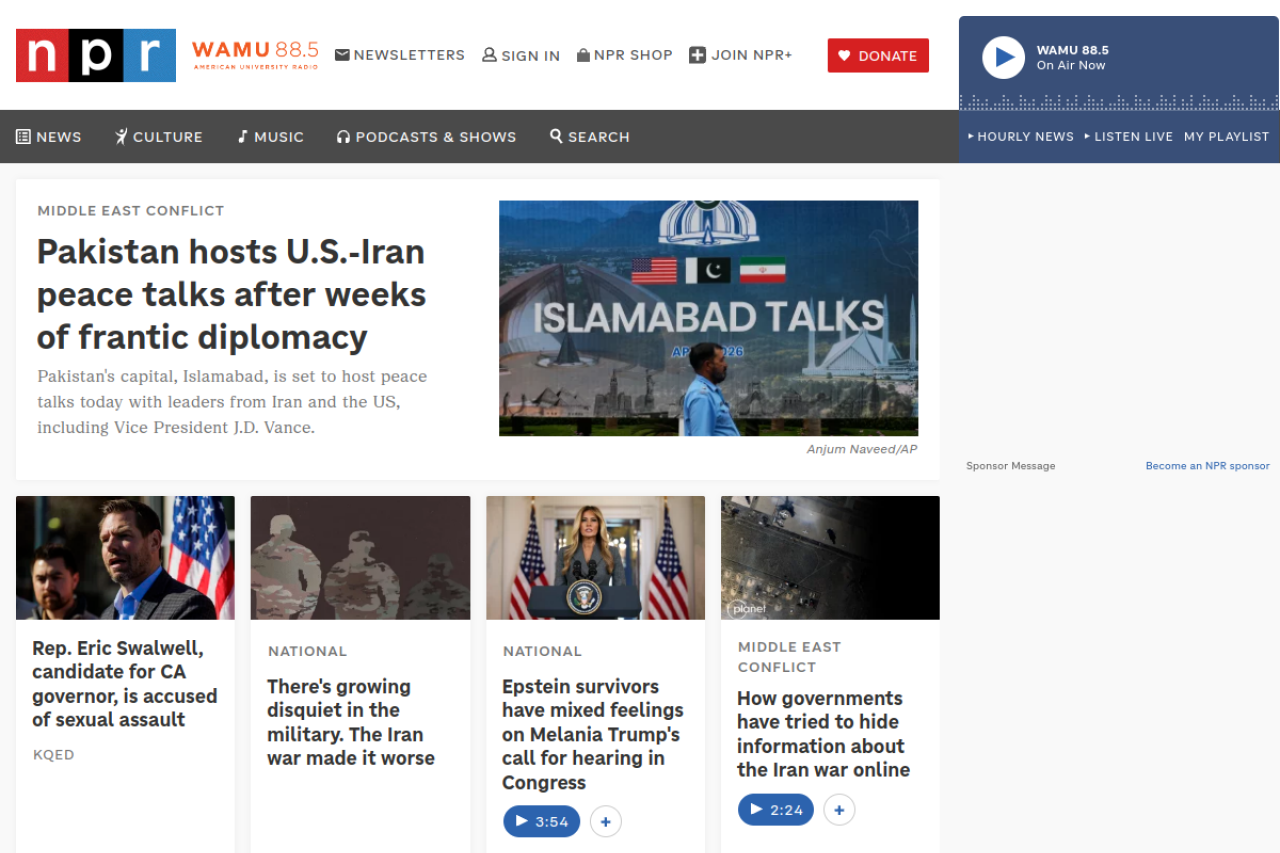 Top stories in the U.S. and world news, politics, health, science, business, music, arts and culture. Nonprofit journalism with a mission. This is NPR.