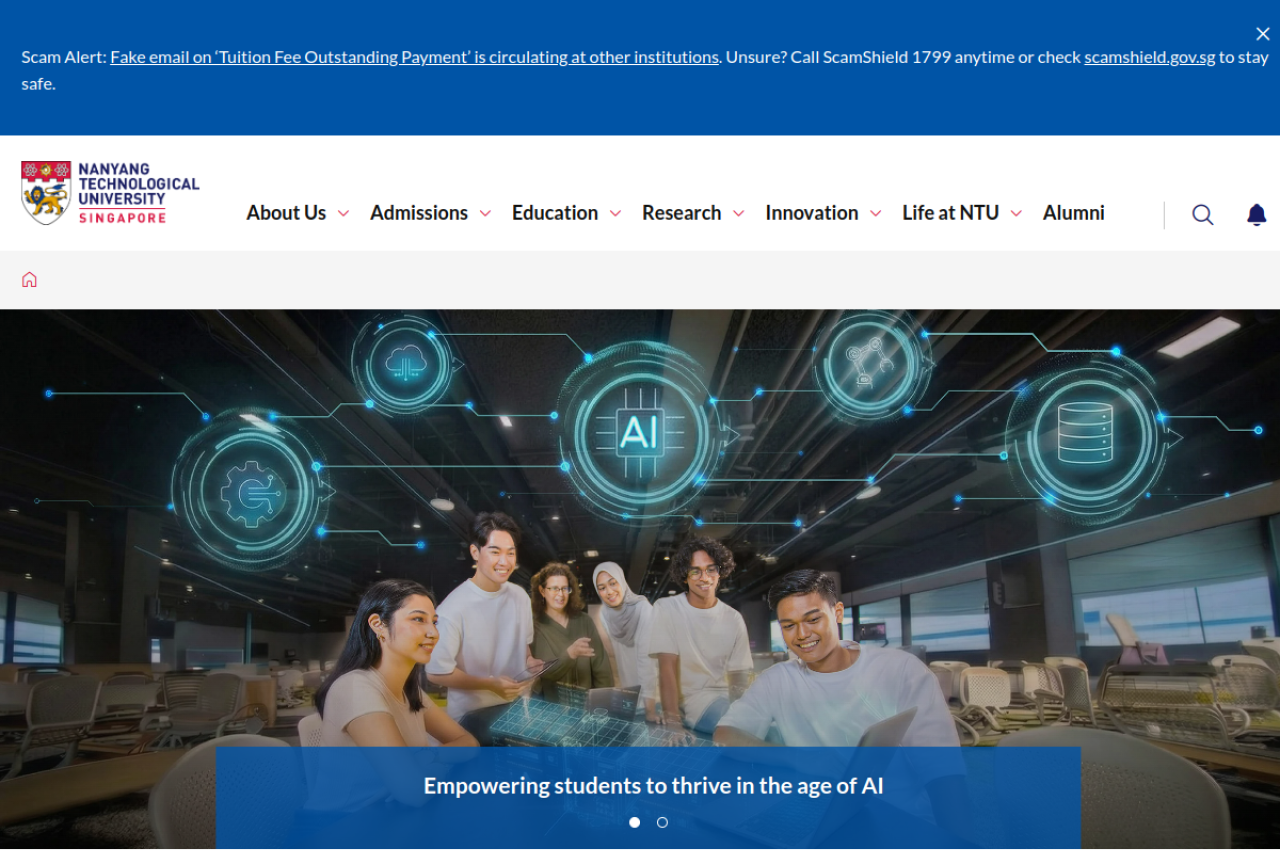 Nanyang Technological University is one of the top universities in Singapore offering undergraduate and postgraduate education in engineering, business, science, humanities, arts, social sciences, education and medicine.