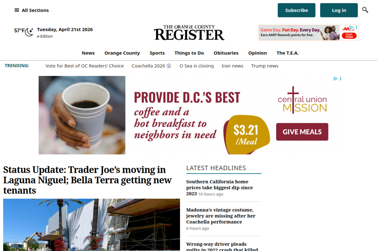 OCRegister.com covers local news in Orange County, CA, California and national news, sports, things to do and the best places to eat, business and the Orange County housing market.