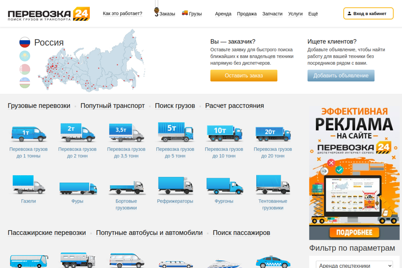 Федеральный портал грузоперевозок по России для водителей без посредников. Биржа перевозки груза на своей машине. Сайт заказа услуг транспорта, спецтехники и пассажирских перевозок — «Перевозка 24».