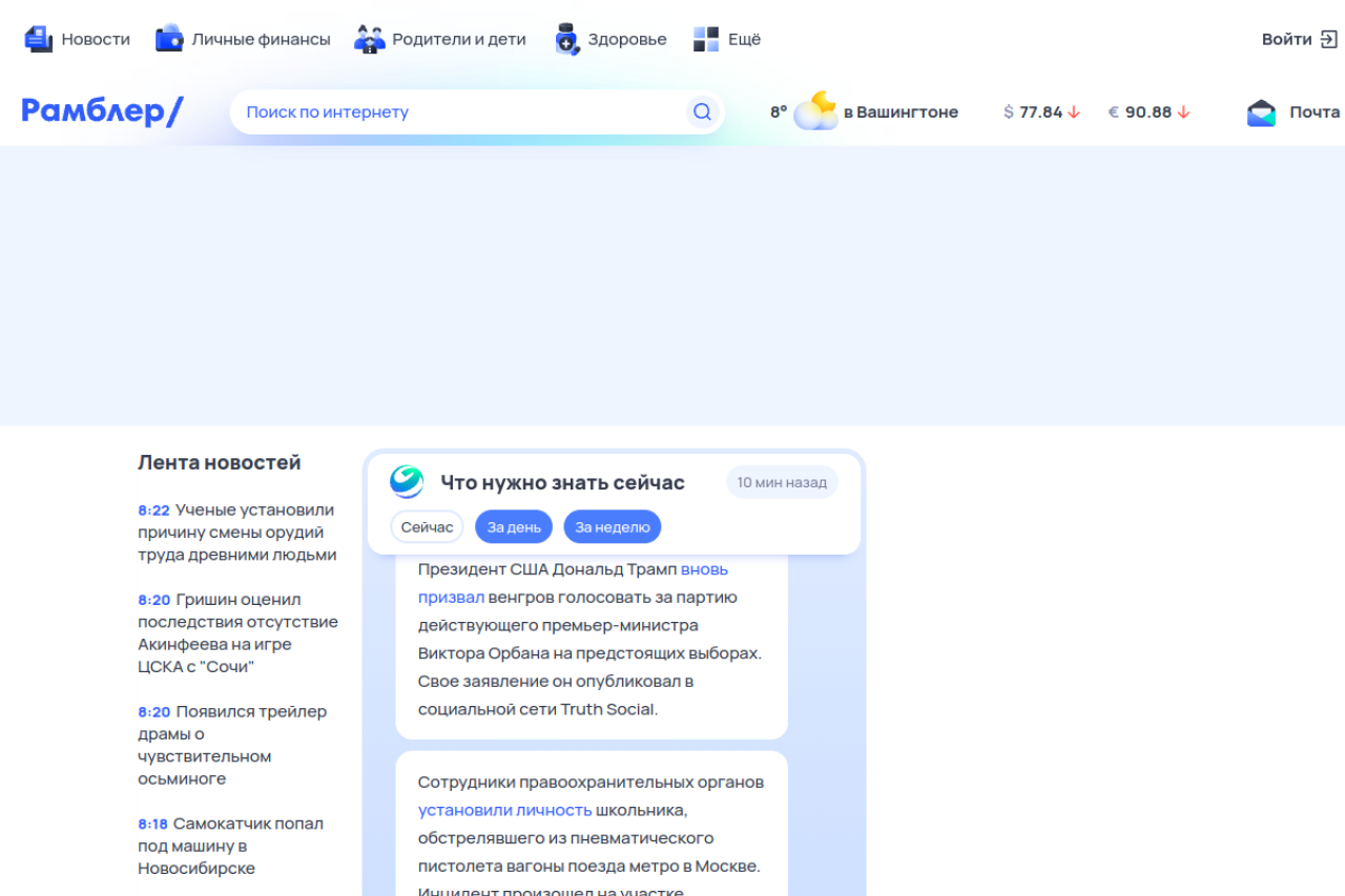 rambler.ru looks like news & weather. Traffic signals point to roughly 94.3M monthly visits. Current AI trust scoring is 15/100.