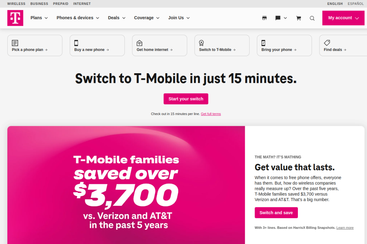 View all 6 alternatives and competitors to t-mobile.com.