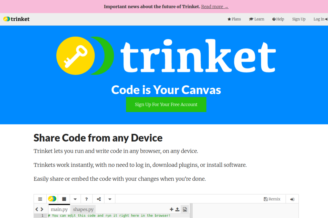 trinket.io looks like technology & computing. Traffic estimates are limited, so use the trust and structure modules first. Current AI trust scoring is 10/100.