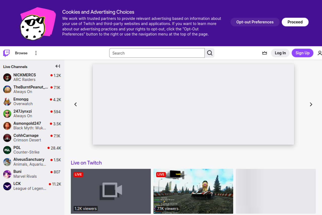 twitch.tv looks like arts & entertainment. Traffic signals point to roughly 1060.8M monthly visits. Current AI trust scoring is 5/100.