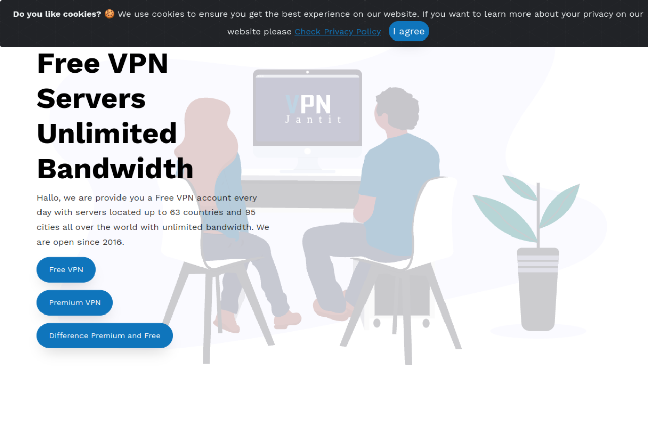 Free VPN Premium VPN services trusted since 2016. Our servers located up to 62 countries and 93 cities all over the world with unlimited bandwidth. Just create username and password vpn that you want then vpn ready to use.