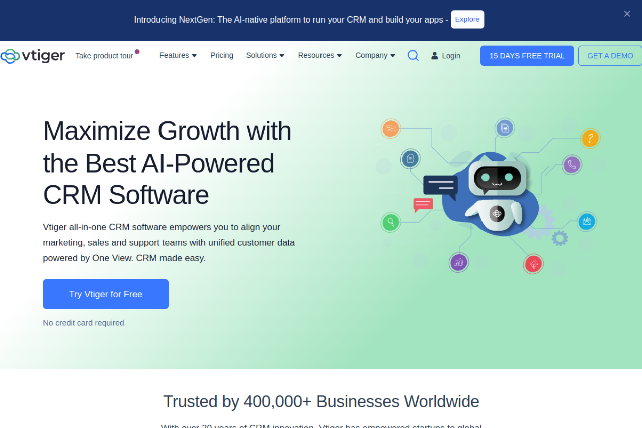 Boost sales, marketing, and support productivity with Vtiger – the all-in-one AI CRM software trusted by 400,000+ businesses. Try for free!