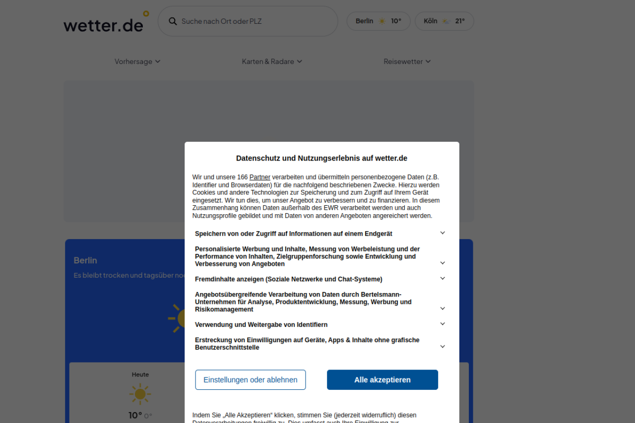 wetter.de looks like news & weather. Traffic estimates are limited, so use the trust and structure modules first. Current AI trust scoring is 15/100.