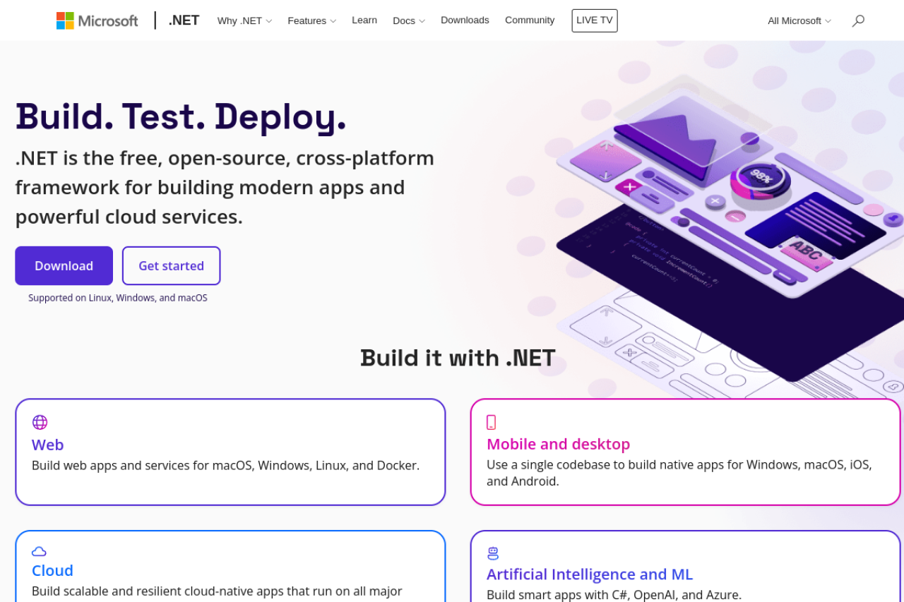 .NET is a developer platform with tools and libraries for building any type of app, including web, mobile, desktop, games, IoT, cloud, and microservices.