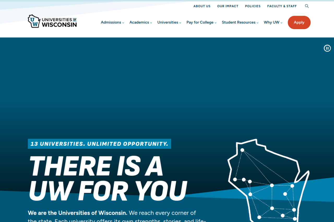 We are the Universities of Wisconsin. Each of our 13 universities offers its own strengths, stories, and life-changing opportunities that create real-world impact.