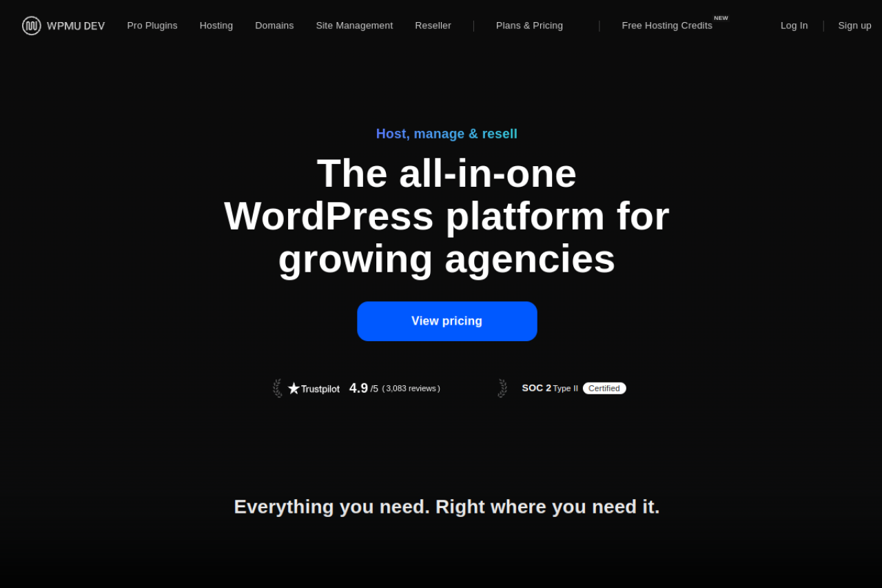 Everything you need for WordPress! Super-powered Hosting, 24/7 Live Support, Site Management tools, and Premium Plugins.